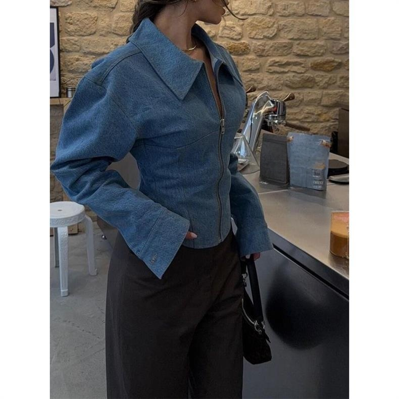 패션 오리지널 반팔 데님 셔츠, 한국 스타일 칼라