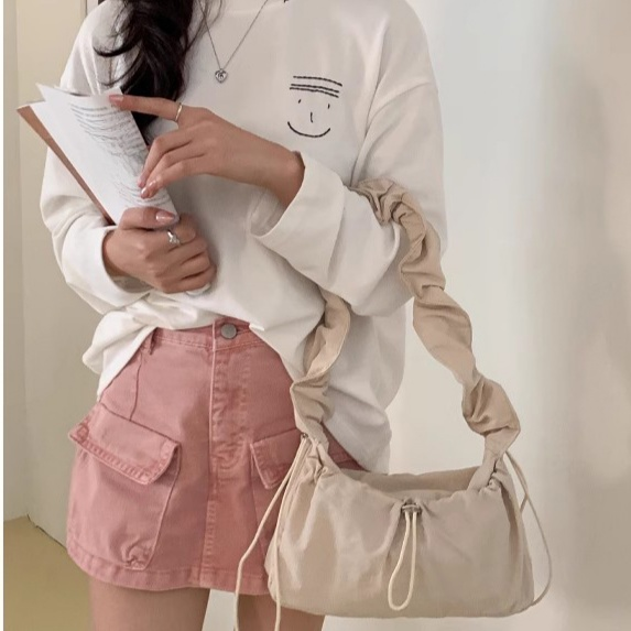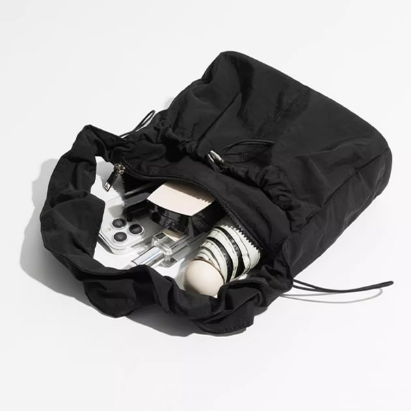 여성용 기품 있는 주름 구름백 나일론 숄더백